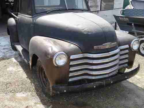 For sale, 1953 Chevy truck. This is a project truck,, I have clear Iowa title in my name! I bought this last year to build but my plans have changed! The body has been off the frame with a lot of the frame cleaned and painted, The previous owner did it! The body is temporarily bolted to the frame, The cab is in need of corners , floor , etc, I have a set of cab corners that are going with the truck. The floor has been partially cut out by prior owner! The engine does run good , was started last fall, Most of the wiring has been removed from the cab and engine bay, The previous owner told me the engine was rebuilt but i can't verify this, The windshield and back windows are in great shape. IT's missing one door window the other is cracked. Tires are good but one looses air. Winning bidder has 72 hours to pay non refundable deposit of $300 via paypal ,, Full payment within 10 days. Cash or postal money order, Can be paid when picked up or by mutual arrangement, Buyer is responsible for pickup and delivery. Will need to contact me to work out details. Truck is sold as is.. period.