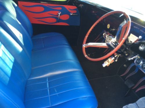 Don't know if it's the right time to sell now but I give it a try, if it sells let it be so if not I just keep it another couple years..... Here is the Story about the car. I bought it maybe 10 years ago at Hot August night in Reno Nevada from a guy from AU name Juice who had built it and shipped it over and spend a month vacation driving it around in CA while trying to sell it to fund his vacation and his next project, went to Pomona and Pleasenton car show and Hot August night. At the time it had a blown 671 compressor and a Harley Davidson motorcycle on the bed which was also blown and had the same paint schema with blue flames and skulls over the bike. The Blower was removed and the bike was sold and I bought the car as you see it here. I been driving it and had fun with it all this time but I think it's time to part from it due to having to many cars and toys. It sits on a GM chassis from a Holden car which is same as our Camaro here in the states, so all the part are inter changeable. The body has been dropped over the chassis and you got individual suspension in the front with power breaks and power steering and disk breaks and leafs in the rear everything is painted light grey. It also has air bags to make it sit real low. It's back with blue/red flames and pinstriped. the interior has a Cadillac steering column and wheel and blue bucket sets and the flames schema goes through the carpet and door panels and the roof. I have the car insured for 37500 which I think the car is worth in the ball park and what it would cost you to build one but I am selling it for much less. It's a nice driver and it get lots of attention for it's looks and flames and most of all right hand drive. Just need a new home and owner. The run down: Chopped Blue Flames Tinted windows Bucket seats Cadillac Steering wheel and column Stick shift Air bags all 4 corners Power breaks Power steering 350/350 Electric fan Electric fuel pump Battery in the rear Sway bars front and rear Got hitch in the rear Gaylord Trunk Lid Aluminum Bed Nice Chrome Chrome steel rims Chassis all painted grey Custom fit Blue California Car cover chopped from factory to fit just this truck |