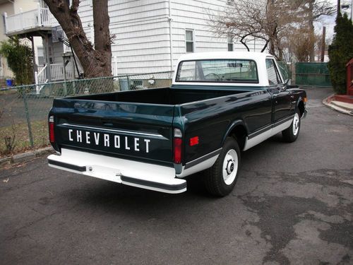 1971 Chevolet pickup Customer C20 orginial engine, 74043 miles. Lots of new parts & new interior. Emeraid green pearl metallic tow tone white. Frame up restoration just completed. 350 Engine, 400 Trans, power steering and power brakes.