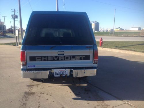 .Good tires all around with two spares. Truck comes with matching topper.4.3 engine(6 cyl) Dual exhaust2 brand new mufflers. New plug wires, New distributor cap New egr valve Heavy duty rear bumper bed liner new battery Recent oil change and new oil filter Only 127,388 miles Has peeling paint(typical for some of those chevy trucks)Minor dent on passenger side front fender1 Bolt rusted on driver's side seat. Windshield wipers work, but rest in a higher position on the windshield. Leaks a little oil. |