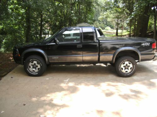2001 CHEVROLET S-10 ZR 2. A BLACK TRUCK WITH DARK GRAY INTERIOR. A ZR-2 WITH A AUTOMATIC TRANSMISSION, COLD AC, BUCKETS WITH FACTORY CONSOLE, FACTORY ZR-2 WHEELS WITH NEW BFG ALL TERRIANS. SPRAY IN BED LINER WITH TONNEAU COVER AND A GRILL GUARD. MANY RECEIPTS, CLEAR GEORGIA TITLE AND 2 KEYS. HAS ORIGINAL WINDOW STICKER, DEALER POUCH AND OWNERS MANUALS. DRIVES GOOD AND LOOKS GOOD FOR IT AGE. HAS 160K. INTERIOR IS NICE.ASK QUESTIONS IF NEEDED PLEASE.