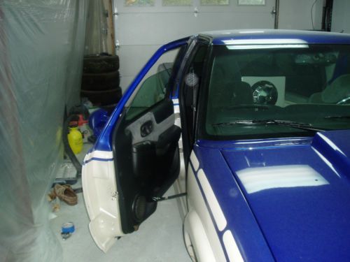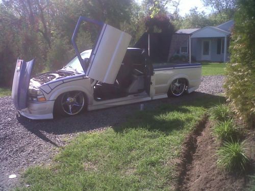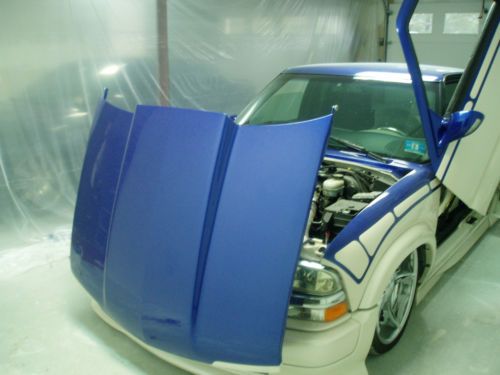 The Customs Complete Dupont paint job, GTO Blue on top and White Diamond pearl on the bottom. Shaved door handles, antenna, gas door, hood squirters and tailgate. As seen in the pictures the tailgate is totally custom welded shut, with recessed plate and cadillac taillights The Driver door opens lambo and the passenger opens suicide The Hood opens forward like a Corvette Total 3 link air-bag system gives the truck about & inches in the front and 9 in the back. the 3 link is one of the smoothest air ride suspensions. Oasis Compressor and speed valves Tv Clarion headunit Audiobahn speakers with JL audio Amp Custom sub box and center Console Custom aluminum steering wheel 20inch rims wood bed 40k invested This Truck would be in what I would call a 9.5 out of 10. There is a slight rip in the one seat and a knick or two in certain hard to see places. I saw the seats online for 100, actully on craigs list. I love this truck but due to lack of use I figured someone could enjoy it as much as I have. It is garage kept and always has been. Please only inquire if you are serious, I am happy to answer any questions and I will give my number to serious people. Please write S-10 lowrider when emailing so i do not delete. I have more pictures Bryan |