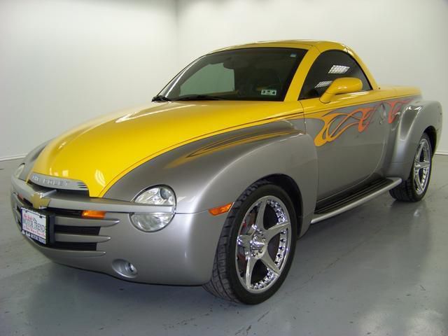 2004 Chevy SSR/35000 Miles. In GREAT SHAPE!!!!! Primary color yellow and silver. Custom painted flames/pin stripe. Custom Tuner supplied with vehicle. Increased shift points and timing, really helped power and totally locks out traction control at your request. Reduced cooling fans to 180d and thermostat to 180d. Stopped and enables vehicle to run cooler on Regular fuel. New dash cluster, console switches, spoiler, KN filter and 2 covers. Always garaged. A lot of fun to drive, ALWAYS gets LOOKS and COMPLIMENTS!!!
