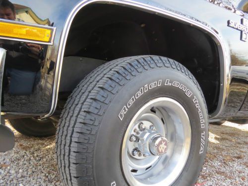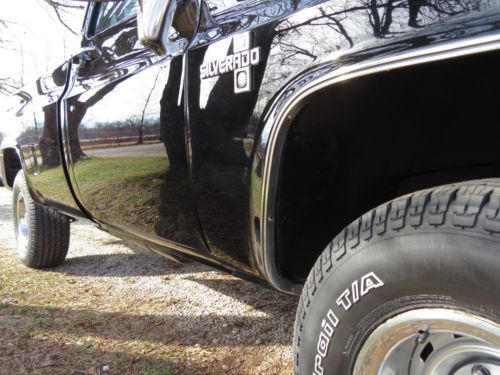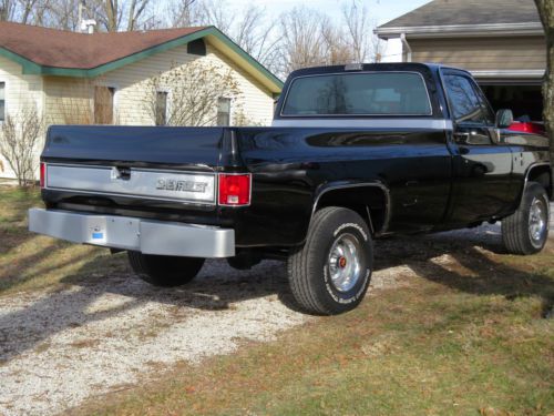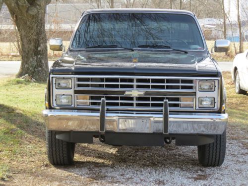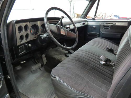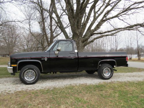 For sale 1986 chevy 4x4 1/2 ton restored show quality black paint original color, engine was replaced 25000 miles ago by dealer 99450 on truck, new a/c compressor and related components, new ball joints tie rod ends, brake rotors, calipers, and lines, shocks new weather stripping and window felts 3.73 gears 31x10.5/15 BFGs, duel tanks, oil changed in front and rear diffs, interior had seat cover on it since it was new so it has been preserved, same goes for the bed, it had a plastic bed liner in it, all the rubber fuel lines have been replaced, 700 R4 transmission also has heavy duty rear bumper. Everything works on this truck very nice condition. Any questions please call 417 380 nine three six two.