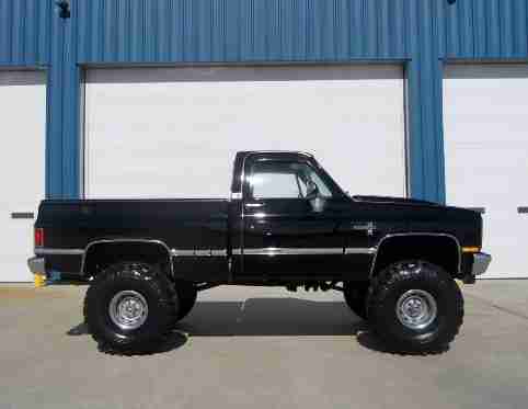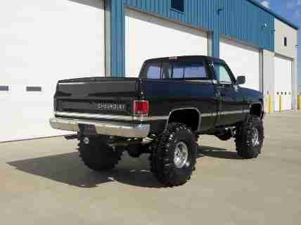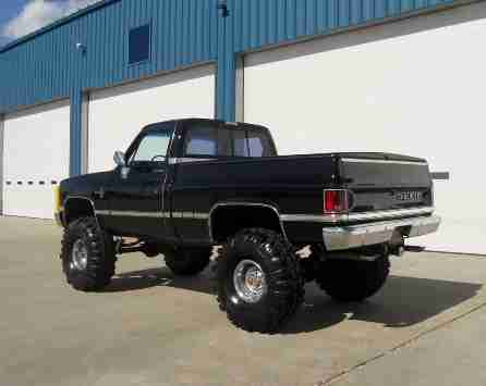 I am selling my 1987 Chevrolet Silverado 4x4 short bed. The truck is black with black interior. It has a 5.7l throttle body fuel injected engine and an automatic transmission. The truck has A/C, tilt wheel, C-D player, sliding rear window, fiberglass bed cover, metal cowl hood, 6" lift, 39.5x15r15 super swamper tsl tires, and locking hubs. The body and paint are very nice and the interior is nice and clean. The truck has been painted some years back and still looks good. The truck runs and shifts good. Rust wise the truck is very solid. I did notice a little rust around the inner fender on the right side, but not much at all. Just thought I would mention it. I've owned the truck for about 2 years and always kept it in a garage and never took it off-road. Just driven on weekends and nice days. It does have the dual tanks, however the left tank needs a fuel pump. I always just used the right side tank. I'm selling because I need the room in my garage. If you have any questions you can call me at (856)-332-2342 or email. Please only bid if you are serious and have the funds to purchase the truck. If you have 0 feedback please call before you bid or I will retract the bid. I have the truck for sale locally so I reserve the right to end the auction early at any time.