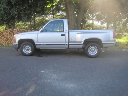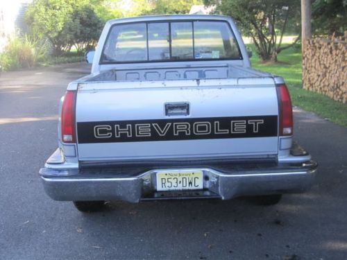 1988 chevy silverado short bed step side flare side 1500. This truck runs and drives very well just passed NJ dmv inspection, bought truck to restore very solid but then found a short bed 69 to restore instead..This stepside has many new parts,,fuel tank and fuel pump, radiator and hoses,clutch, also slave and clutch cylinder, starter, The body has new rocker panels and cab corners that were replaced the floor is solid looks like it was galvanized from factory,The bed sides are fiberglass..Truck has ac but has a slow freon leak..and needs radio .Those are the 2 problems..minor..The body has rust on roof I think gives it character or patina.also body has minor chips scratches and small dings,I was going to drop and paint truck but never got around to it..The truck would not take much to paint or drive as is..Truck is located in central New Jersey and is ready to drive and inspect before end of auction..You can drive this truck no problem very dependable .oil changed always..Truck is sold as is with no know problems..Will answer questions.. please dont bid if you dont want truck only serious bidders please..Thanks good luck..