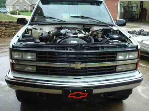 HERE IS A 1997 CHEVY SILVERADO EXT CAB 3 RD DOOR, WITH A VORTEC 350 MOTOR WITH MAGNA SUPERCHARGER WITH HEADMAN CERMAC COATED HEDMAN HEADERS AND NEW MAGNA FLOW DUEL EXAUST, I JUST HAD THE TRUCK INSPECTED TWO WEEKS AGO, I PUT AROUND 50 MILES ON IT AND IT RUNS AND SHIFTS GOOD THE MOTOR AND TRANSMISSION WAS REBUILT 40,000 MILES AGO WHEN MAGNA SUPERCHARGER WAS ADDED, I PUT NEW WIRES AND SPARK PLUGS ON IT YESTERDAY, I THINK THERE IS SOME WATER IN GAS TANK IT IS MISSING A LITTLE, THERE IS NO CHECK ENGINE LIGHTS ON IT, THE INTIOUR NEEDS TO BE SHAMPOO AND THERE A COUPLE TRIM PIECES MISSING AND ONE AIRCONDITION VENT, I HAVE A GOOD HOOD TO GO WITH IT IF SOMEONE WANTS IT WITH SALE OF THE TRUCK,IF SOMEBODY DONT WANT THE STEPSIDE BED I WILL KNOCK OFF A LITTLE ON PRICE I AM SELLING THE TRUCK CHEAP THE SUPERCHARGER ALONE IS $5000 ALONE NOT COUNTING THE REBUILD ON MOTOR AND TRANSMISSION. PLEASE FEEL FREE TO CALL ME WITH ANY QUESTIONS THANKS KEVIN