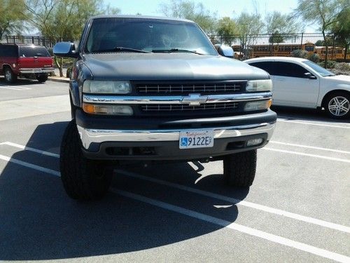 Divorce forces sale of Custom CST lifted 6plus at $6500. CST made custom A arm mounts for heavy duty off raod...only a few have the custom parts I have. Lift in rear are deaver springs ($600), 35in Toyo Tires new ($1000), mobil1oil from birth, 95k miles only on motor...strong,strong,strong!!! , K&N cold air kit ($500), hypertech tune($200), meticulous care,Climbed oldsmobile hill at Glamis and cruise the dunes all day long with ease thanks to 4:10 gears, Climbs any hill anywhere! flowmaster cat back, pioneer cd with amp and sub, near perfect interior charcoal, tinted windows, new batt, water pupmp, master cyl, brake fluid, brakes, recent trans service filter and flush, new gear oil rebuil rear end, new transfer case oil, just perfect maintenance! Dual front shock CST and Rear CST. Rides amazing and off roads for real not show!! Ice cold ac with rear seat ac, power window, locks, seats, mirrors, lowjack, hypertech tune inc, center counsol buckets. Amazing body style at 2002, just before the change in design...class truck with massive power. I love this truck and wish I did not have to sell and split money with ex wife. I am mad, but have to sell my baby!!! You will love this truck forever! I am anal with maintainence and never missed a service. Change oil every 3000 miles with Mobil1 synthetic only and rotate tires. Just flushed brake system at 90k miles for the heck of it and added new master cylinder. Both Flushed trans and changed filter, put new water pump and flushed cooling system. New belts, ac just serviced...ice cold. Put new Felpro intake gaskets, upgrade from stock just because stock suck!. Rebuilt 4:10 locking rear end at 80k miles. New DANA U Joints. Trailer Brake installed. New GM oil for transfer case. I loved the truck so much, I change and service as per manual and even more just because. New spark plugs at 80k mi. Hypertech tune really brought up torque and HP with K&N...shift points dialed in and it is just a pleasure to drive...rar deavers are great off road and the highway ride is awesome because they are 6in lift, so no blocks needed so geometry is perfect.. All new speakers and sub woofer with JBL amp. bed liner spray on. Z71 off road package. Will need new plates...disabled plates stay with seller. Just a beautiful truck and hard to get rid of...very hard for me.