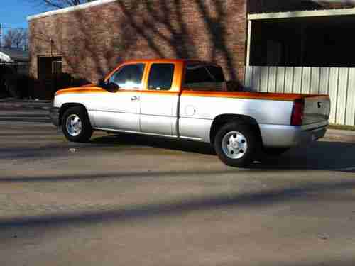 2003 Chevy C1500 Silverado. Custom paint. House of Kolor Kandy Tangelo Pearl over Bright Silver base. Sharp truck. Dark charcoal cloth enterior. Fold down center console. Lowered 2 " in rear to give truck a level stance. Billet grill,rear roll pan & true dual exhaust. Eagle alloy wheels and Michelin tires.Truck looks,sounds and drives very nice. Always a daily driver,not a work truck. Drive train is a 4.8 V8 engine w/4L60E transmission & 3:42 rear axel.I have the rear bumper and receiver hitch for the truck also. Runs strong and gets excellent fuel economy. Truck has 132k miles and this will go up a little as I drive the truck almost daily. Its a good,reliable truck. Truck does have a small dent in rear roll pan from someone backing into it. Its fixable,I just haven't done it yet. I have priced it fairly. It has a clean title,up to date on tags. Fresh synthetic oil change. Its ready to go. Winning bidder will need to submit a deposit of $500.00 within 48 hours. Balance to be paid in cash upon picking up vehicle. I have vehicle listed locally and it is subject to prior sale,so bid to win or hit the buy it now. Thanks for looking. I am available to answer questions @ 405-412-2580. No over sea deals. No shipping.