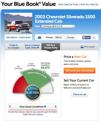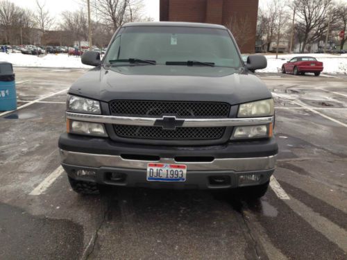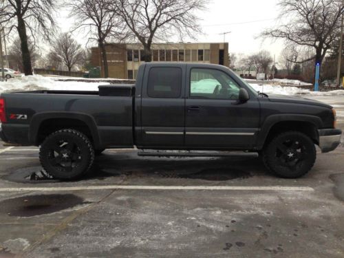 For sale is an extended cab 2003 Chevrolet Silverado 1500 Z71 4x4 5.3L. The truck has 168,XXX miles on it. Since May '13 it has had the rotors, calipers, and brake pads replaced, with the alternator and battery being replaced last month. The truck has a 2.5" leveling kit with 20" KMC XD Rockstar rims and 33x12.50x20 Toyo Open Country MT tires. I also added a kenwood cd/dvd touchscreen bluetooth console, black nerf bars, a black locking toolbox and a flow master american thunder cutback dual exhaust system. The truck runs well and is great in the snow and mud. Thanks for looking and let me know if you have any questions!