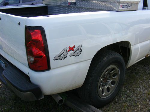 This is my 2006 Chevy Silverado. Truck comes with the tool box and electric 100 gal fuel tank as pictured. It has LOW OIL PRESSURE. It has 11 lbs of pressure at idle and the alarm comes on. Alarm goes away when you give it a little gas. The problem just started so I assume it is the oil pump. I had a highway seeding business and this truck was my project manager's truck. We worked in a 5 state area so most of the miles are interstate miles. Body is in great shape except for a little rust that is starting to show through.