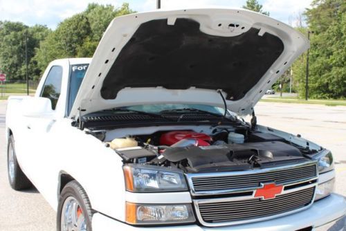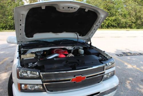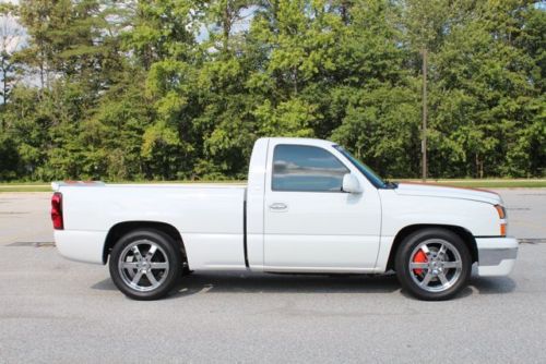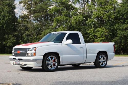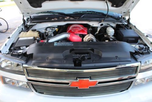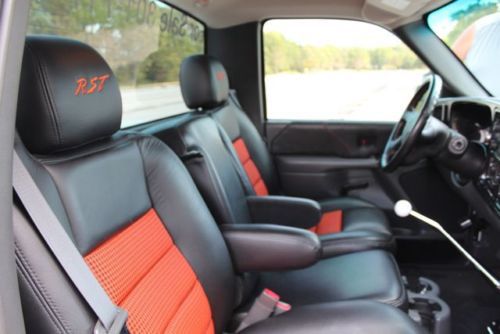 Exterior: Beautiful premium white paint with orange racing stripes. Custom billet grill with color matched bowtie. Color-keyed front spoiler w/driving lights and billet insert. Color-keyed rear steel roll pan with molded exhaust ports and front bumper designed by Chip Foose. Exclusive rear tailgate spoiler w "RST exterior graphics. Color-Keyed factory mirrors. 1.3/3" drop. New 20x8.5 Black Rhino Wheels with new Yokohama 265/50 tires. Heavy-Duty Performance Brakes w/Oversize 14" vented two-wheel disc brake rotors w/color keyed caliper cover (SSBC Big Brake Kit).Interior: Black Leather with Orange Houndstooth custom interior. Seats are the 40/20/40, with armrests for both driver and passenger windows. Sport-enhanced, carbon-masked dash kit. Custom stainless steel dash w/red illuminated gauges. Under the hood: 4.8 w/5 Speed. JBA Shorties Ceramic Headers and Regency SS Exhaust Tips. True Flow Air Intake System. Color keyed fuel injection cover. 3:73 gears w/posi-rear end. Regency sport-tuned front and rear suspension. Ground Force Kit 9937. The truck is fore sale locally, I reserve the right to end the auction early. Low Reserve - good bidding and good luck for a chance to own a very desirable Limited Edition Sport Truck. |