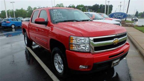 This 2010 Chevrolet Silverado 1500 4dr 4WD Crew Cab 143.5 LTZ 4x4 Truck features a 5.3L VORTEC V8 8cyl Flex Fuel engine. It is equipped with a 6 Speed Automatic transmission. The vehicle is Victory Red with a Ebony Leather interior. It is offered As-Is, extended warranty is available. - Air Conditioning, Dual Zone Climate Control, Cruise Control, Tinted Windows, Power Steering, Power Windows, Power Door Locks, Power Mirrors, Leather Steering Wheel, Power Drivers Seat, Power Passenger Seat, Memory Seat Position, Heated Seat, Tow Package, Clock, Tachometer, Digital Info Center, Tilt Steering Wheel, Steering Wheel Radio Controls, Driver Airbag, Passenger Airbag, Side Airbags, Keyless Entry, Security System, ABS Brakes, Traction Control, Rear Defogger, Fog Lights, Intermittent Wipers, AM/FM, CD Player, Bose Premium Sound System, 18 inch Aluminum Wheels, Leather Interior Surface, Four Wheel Drive,, Compass And Temperature Display, Luxury Seats, Aux. Audio Input, Accent Stripes, Child Proof Door Locks, Locking Tailgate, 12v Power Outlet, Premium Alloy Wheels, Tow Hooks, Tire Pressure Monitor, Center Console, Heated Mirrors, Premium Sound, Remote Start, Center Arm Rest, Body Side Moldings, Vanity Mirrors, Bedliner, Carpeted Floor Mats, Cup Holders, Compass And Temperature Display, Front Heated Seats -