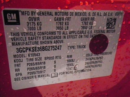 VIN (Vehicle Identification Number): 3GCPKSE36BG275247