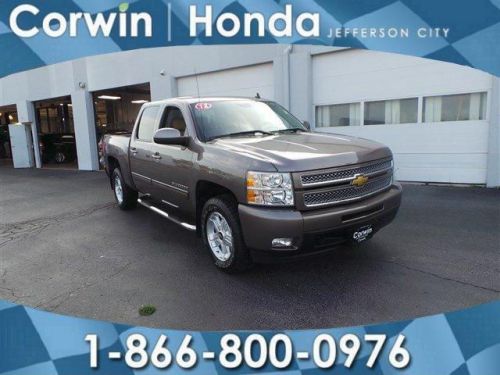 Vortec 5.3L V8 SFI VVT Flex Fuel, 4WD, 10-Way Power Front Passenger Seat Adjuster, Alloy wheels, Bose Premium Audio Speaker System, Dual-Zone Automatic Climate Control, Fully automatic headlights, Heated front seats, and Memory seat. New Arrival!Chevrolet has done it again! They have built some terrific vehicles and this good-looking 2012 Chevrolet Silverado 1500 is no exception! It will take you where you need to go every time...all you have to do is steer!www.corwinhondajeffcity.com Outstanding selection of Used Vehicles, Financing serving Jefferson City, Columbia, Lake Ozark, Sedalia, Boone County, Callaway County, Moniteau County, Cole County, Osage County, Rolla, Fort Leonard Wood, Moberly, Marshall, Fulton, Mexico, Missouri, Kansas City, St Louis, Springfield, and CamdentoN. Corwin Honda of Jefferson City has a terrific selection of high quality pre-owned vehicles of all makes and models. All of our pre-owned vehicles have been inspected, so you can drive with confidence! Come see the Corwin Difference today! Right on the price. Right on Missouri Boulevard, Jefferson City.