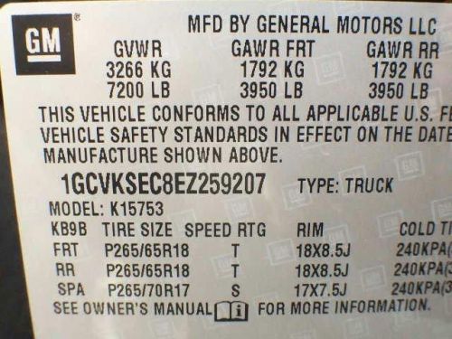 VIN (Vehicle Identification Number): 1GCVKSEC8EZ259207
