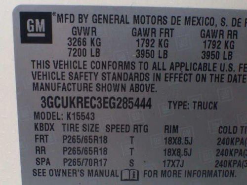 VIN (Vehicle Identification Number): 3GCUKREC3EG285444