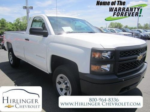 Preferred Equipment Group 1WT, Trailering Equipment (Heavy-Duty Rear Locking Differential), 6-Speed Automatic Electronic with Overdrive, 4WD, Jet Black w/Cloth Seat Trim, 5.3l V8 ENGINE, HEAVY DUTY TRAILERING, POWER HEATED OUTSIDE MIRRORS, POWER WINDOW AND LOCKS, Remote Keyless Entry, REMOTE KEYLESS ENTRY, and SNOW PLOW PREP PACKAGE. WARRANTY FOREVER!!! LIFETIME POWERTRAIN WARRANTY AT NO CHARGE!!Hirlinger Chevrolet is honored to offer this stout 2014 Chevrolet Silverado 1500 that is ready to get to work for you. You just simply can't beat a Chevrolet product. This truck is nicely equipped with features such as Preferred Equipment Group 1WT, Trailering Equipment (Heavy-Duty Rear Locking Differential), 6-Speed Automatic Electronic with Overdrive, 4WD, Jet Black w/Cloth Seat Trim, 5.3l V8 ENGINE, HEAVY DUTY TRAILERING, POWER HEATED OUTSIDE MIRRORS, POWER WINDOW AND LOCKS, Remote Keyless Entry, REMOTE KEYLESS ENTRY, and SNOW PLOW PREP PACKAGE. Price includes all rebates and dealer cash. In lieu of special financing. Tax, title, and license fees additional. See dealer for details. While every reasonable effort is made to ensure the accuracy of this data, dealer is not responsible for any errors/omissions which may occur. Please verify all information with dealer sales . Must show proof of current ownership and trade a 1999 or newer vehicle on certain vehicles. Residency restrictions may apply and not everybody will qualify for all incentives. See dealer for details. CONTACT GARY, Mark, OR MIKE AT 866-601-6063 FOR A GREAT DEAL ON THIS VEHICLE!