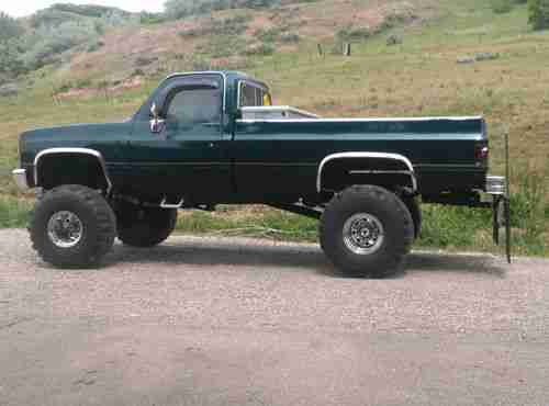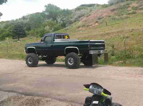 This is a way sweet truck 12 in lift nice shocks 12 of them around it rust free and paint is good except the hood is fading it has 40in tires that need replaced and the rims are very nice has a nice stereo system the motor is so super strong its a 383 stroker and has all expensive aluminium chrome engine parts 7 quart oil pan that is also aluminum chrome the underneath is spry coated every summer it is automatic the windshield will need replaced and it needs the kit for gearbox and frame installed to reinforcement box is good just needs reinforced that is all the rest of truck is very clean and in good condition the motor alone is worth 3,000 there is just so many little detail parts on this truck call or text 801 529 4437