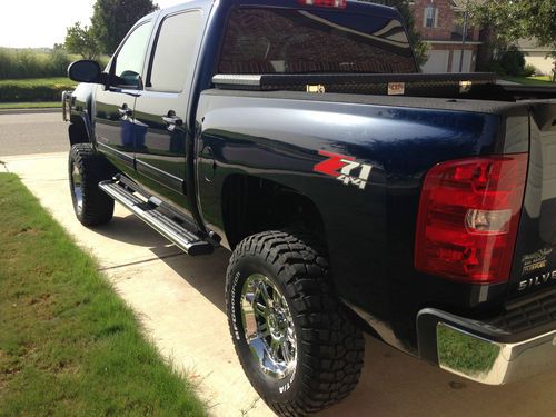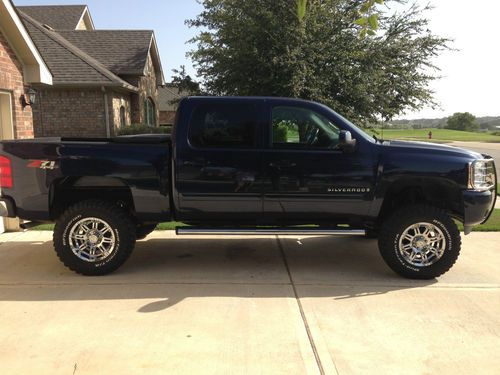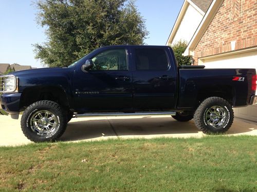 2009 Chevy 1500 Silverado 4x4 LTZ package with all the extras you can think of. Lift Kit installed by Off Road in San Antonio with all rotations done by Off Road of Austin, 35" Goodrich Mud-Terrain T/A 's on 18" custom Chrome rims, Dual heated/power leather seats with wood grain throughout, Bose stereo package, Low profile black Diamond tool box by C.D.I., Chrome running boards, Spray in Bed Liner extends over the rails for complete protection with a custom Chevy Bow Tie imprinted in the center of the bed, auto start, and Chrome Grill Guard.