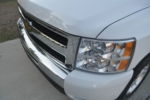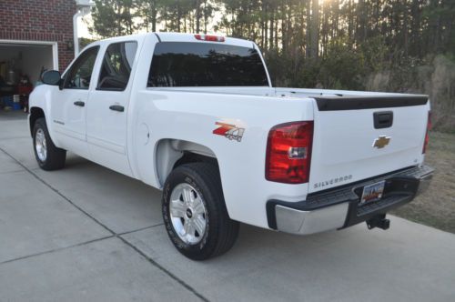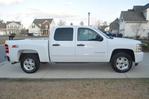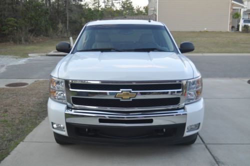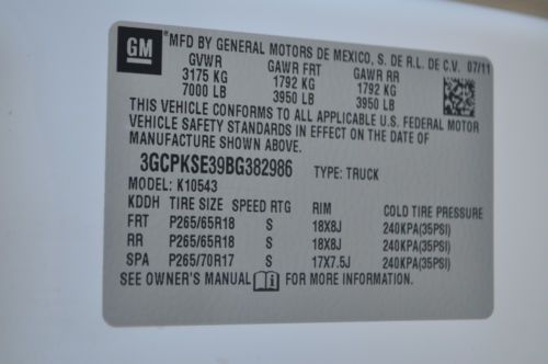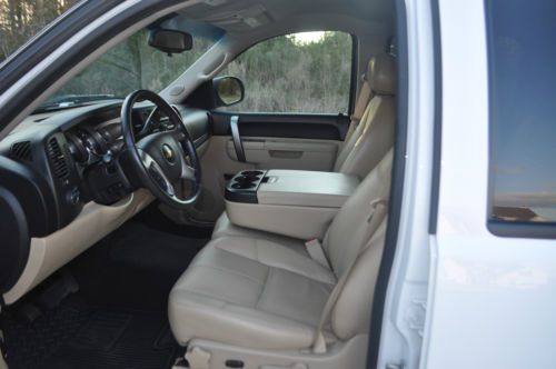 CHEVROLET 2011 SILVERADO 1500 4WD CREW CAB LT EXTERIOR: SUMMIT WHITE, INTERIOR: LIGHT CASHMERE/EBONY FACTORY 5 YEAR 100,000 MILE POWERTRAIN WARRANTY ALL STAR EDITION: VORTEC 5.3 L V8 ENGINE, WITH ACTIVE FUEL MANAGEMENT, 6 SPEED AUTOMATIC TRANSMISSION, LOCKING REAR DIFFERENTIAL, TRAILERING PACKAGE, ALUMINUM WHEELS 18 INCH ON ROAD/OFF ROAD WHITE LETTERING, HEAVY DUTY COOLING, AUTO DUAL ZONE AC, BLUETOOTH FOR PHONE, CD PLAYER WITH USB PORT, STEERING WHEEL RADIO CONTROLS, FOG LAMPS, LOCKING TAILGATE, EZ LIFT TAILGATE. Z71 OFF ROAD SUSPENSION PACKAGE, OFF ROAD SKID PLATES, HIGH CAPACITY AIR CLEANER. LEATHER SEATS, 40/20/40 SPLIT BENCH SEAT, DRIVERS SIDE 6 WAY ADJUST SEAT REAR AXLE 3.42 GVW RATING 7000 LBS FULL SIZE SPARE TIRE ONSTAR NON SMOKER/NON TOBACCO PRODUCTS OWNER, NO PETS. I HAD THE VEHICLE DETAILED TO INCLUDE SHAMPOOING THE CARPETS AND LEATHER CLEANING/TREATMENT. ALSO THERE IS TWO COATS OF WAX ON THE TRUCK. THE TRUCK HAS NEVER BEEN IN AN ACCIDENT. I DROVE IT ON THE INTERSTATE BACK AND FORTH TO WORK MOSTLY. NO DAMAGE ON THE VEHICLE, CHAINGED THE OIL ON SCHEDULE. NEVER HAD A PROBLEM WITH IT. I WIPED DOWN THE ENGINE COMPARTMENT AS WELL. THE ENGINE COMPARTMENT HAS A LARGE PREPOSITIONED MOUNT FOR A SECOND BATTERY, WAS A GOOD IDEA CHEVY HAD. THANK YOU FOR BIDDING.