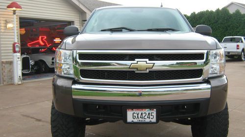 PRICED TO SELL 2007 Chevy Silverado 1500 Crew Cab Lifted 4 X 4 Z71 5.3 Liters. It is a unuasual color Brown with a $6,000 7.5" BDS Body and Suspension Lift proffesionally installed 35" X 20 X 10. It has Toyo Open Country MT's Tires with XD series Hoss Wheels. The interior is a beige cloth with Weatherguard beige matts, fold up rear seats, no scratches, no dents, no dings, non smoker ,even the wheel wells are wet sanded and buffed never driven in the winter or in the mud. Just bought brand new tires at $425 each I used this for a show truck to haul my enclosed car trailer with showcars. It has 68797 low highway miles. Always used synthetic oil every 3k miles I get approxtmatley 15mpg. Absoulutley no rust anywhere and compliments everywhere I go. It has a powder coated tool box and a heavy duty hitch set up with a trailer brake package. The bed area has zero dents ,or scratches No trades at all. Please call me if you have any questions or want to come see the truck in person my name is Jason and my number is 414-659-9634. It is truly a nice truck and was well maintained. The truck looks great in person. Price and compare. Thank you for looking.