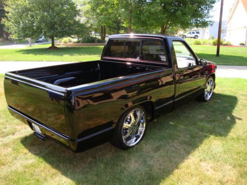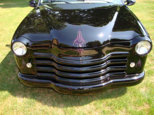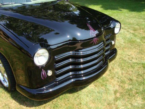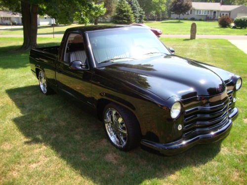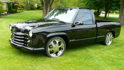 YOU ARE LOOKING AT ONE AWESOME, CLEAN,CUSTOM ,SOUTHERN TRUCK, WITH 1952 CHEVY PICKUP FRONT CLIP. TRUCK HAS BEEN LOWERED 4 FRONT, AND 6 REAR, ON THIS STANDARD CAB SHORT BED TRUCK. STAKE HOLES FILLED IN, TAIL LIGHTS FILLED IN, TAIL GATE HANDLE REVERSED, AND RUNNING ON BEAUTIFUL 20" CHROME WHEELS. 1954 VET. RUNNING/TURN SIGNAL LIGHTS POWER STEERING POWER BRAKES POWER LOCKS POWER WINDOWS CRUISE CONTROL COLD AIR CONDITIONER GM 502 CRATE ENGINE, (BOUGHT NEW LESS THAN 3000 MILE SINCE INSTALLED) 525 HP/465 TORQUE, 850 HOLLY, BUILT TO 903, ELDELBROCK INTAKE AND EXHAUST, ALL NEW PULLYS, BELTS, GEN. AIR COMPRESSER, ETC. 700R TRANSMISSION WITH OVER DRIVE THAT HAS BEEN BUILT TO MATCH THE HP AND TORQUE, 2500 TORQUE CONVERTER, AND A AUBURN POSI REAR WITH 377 GEAR INTERIOR DONE FROM HEAD LINER TO CARPET, DOORS, , (EVERYTHING REDONE) LOTS OF BILLET IN DASH, CHROME STEERING WHEEL AND DOOR SILL PLATES THIS TRUCK IS FROM NEW PORT RICHEY FL. WITH NO RUST EVER, A CONSTANT SHOW WINNER. WINNING BIDDER IS TO PAY $1,000.00 DEPOSIT WITHIN 72 HOURS AFTER WINNING BID, BALANCE WITHIN 10 DAYS OF CLOSE, OWNER ACCEPTS CASH, OR BANK CASHIERS CHECK. TRUCK PICK-UP IS IN AKRON OHIO DON`T MISS THIS ONE, OVER $30,000.00 INVESTED, YOU COULD NOT BUILD ONE FOR THIS PRICE, DRIVE ANYWHERE.