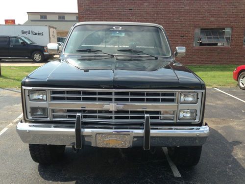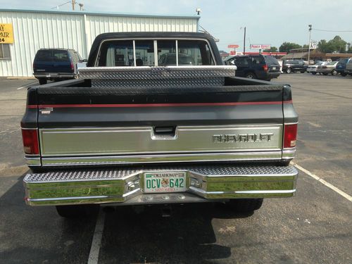 This 1985 Chevy Silverado is one of my personal collection. I am selling to make room in my sales show room for another business venture. I purchased this truck in 2008, the previous owner had put in a new crate 350 motor, new transmission and lift kit. It was sold to me as having less than 20k on the new parts. I personally have put less than 200 miles on the truck. I have stored it in my show room everyday since I've owned it except taking it to some car shows & parades. The truck has custom interior, tachometer, Mickey Thompson wheels, new tires, aprox 4" lift kit, lots of chrome under the hood, K & N Filter Charger, Edelbrock Carburetor, Chrome Flow Master duel exhaust, air conditioning, lots of chrome underneath including oil pan & starter. Chrome diamond plate tool box & interior door trim.