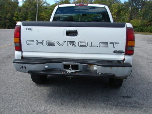 OK YOU ALL HAVE HEARD THE OLE SAYING DONT JUDGE BOOK BY ITS COVER. WELL THEN THIS TRUCK IS A PRIME EXAMPLE. THOUGH THIS TRUCK HAS COSMETIC FLAWS THROUGHOUT IT IS MECHANICALLY ROCK SOLID. THIS TRUCK HAS HAD RECENT COMPLETE TUNE-UP COIL PACKS, PLUGS ETC. THE BRAKES HAVE BEEN COMPLETELY REDONE FRONT AND BACK. DUE TO THE TRUCK BEING RETIRED AND THEN BEING BROUGHT BACK TO THE FLEET MECHANICAL STANDARDS THEY SPENT NEARLY $3000 IN MAINTENANCE. THIS TRUCK RUNS AND DRIVES LIKE A CHAMPION. THE ENGINE STARTS EASY AND RUNS STRONG. THE OIL PRESSURE IS READING 60 LBS AT HIGWAY SPEEDS . THE TRANSMISSION SHIFTS SMOOTHLY AND HAS NO HARD OR DELAY SHIFT. THE TRANSFER CASE FOR THE 4X4 IS EASY TO ENGAGE AND WORKS PROPERLY IN HIGH AND LOW RANGE. THE TIRES ARE NEAR NEW LT 16 TYPE. THIS TRUCK NEEDS NO MECHANICAL REPAIRS AND IS READY TO DRIVE AWAY. THE BODY SHOWS NORMAL USE WEAR AND TEAR THAT IS FOUND ON MOST UTILITY COMPANY WORK TRUCKS. THERE IS SOME RUST FORMATION STARTING ON THE ROCKERS BUT FOR A 12 YEAR OLD TRUCK NOT BAD AT ALL. THE INTERIOR SHOWS AVERAGE WEAR WITH SOME TEAR ON THE DRIVERS SEAT. THIS IS A TRUCK THAT YOU CAN DRIVE EVERYDAY OR PUT IT ON THE JOBSITE AND NOT WORRY ABOUT SCRATCHES OR DENTS ON A NEWER TRUCK. IF YOU ARE A PLOW OPERATOR THIS IS ONE YOU SHOULD DEFINATELY COME CHECK OUT. WITH THE LOW MILES AND UPDATED MECHANICALS YOU WILL NOT BE ABLE TO FIND A BETTER RUNNNING TRUCK FOR THE MONEY. CALL 859-588-1485 FOR QUESTIONS.