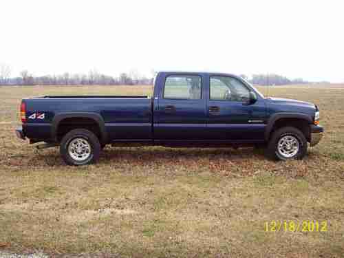 You are viewing a 2002 Chevrolet Silverado 2500 HD crew cab 4x4 truck. I have owned it since 2007 and believe I am the second owner. It has been a good truck and I am only selling it because I have changed jobs and no longer need a truck. I attempted to maintain it well. You will see from the pictures it looks pretty good. I bought alloy rims to replace the stock steel wheels. I have added a Sony CD player and a bug shield. I also added the receiver and wiring so I know it didn't pull a trailer the first five years of its life. The following items have been changed relatively recently: fuel pump, transmission filter & oil, trasfer case oil, front & rear differential oil, engine oil, air filter, rear ceramic brake pads and rotors, spark plugs, spark plug wires, PCV valve, fuel filter, battery r and rear axel seals.