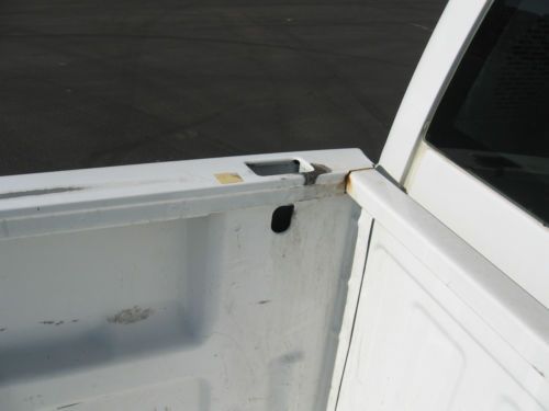 torn inside of bed where tools boxes were mounted, holes in bed and top rail