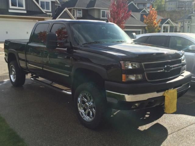 For sale is my 2006 Chevrolet Silverado 2500 HD, crew cab short box with a Duramax Diesel and Allison 6spd transmission. The truck is a fully loaded LT with the GFX package. All of the GFX badging has been removed. The carbon fibre dash trim and silver face gauges are all that remain. It is black with charcoal gray leather interior. It has bucket seats, heated power front seats, power windows, power locks, air, duel zone climate control, power sunroof, tilt steering, cruise control, a 7 double din stereo with Nav, DVD, Sat radio and a back up camera, it has a Back Flip box cover, box liner, trailer hitch. The truck has a number of tasteful modifications that sets this truck apart from the others. It has a three inch levelling kit including one inch blocks in the rear, 20x9 chrome rims with 33 tires, 5 MBRP stainless exhaust, MBRP down pipe, AFE air filter, AFE Intercooler tube, an attometer Pyro gauge, a Garrett Stage One Turbo, EFI Live Tuning with the DSP 5 switch, tinted windows. The truck is meticulously maintained and has recently been through the local Chev dealership for a full service. It has very low miles on it and had been babied its entire life. The majority of the miles on the truck are highway miles and it does not go off road.