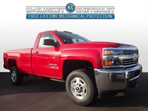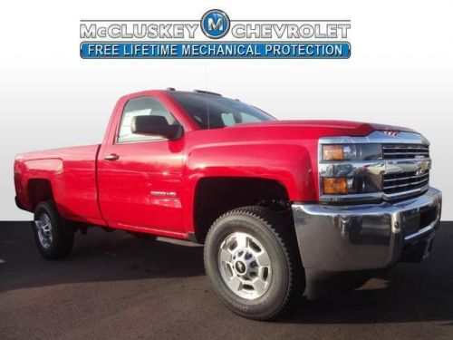 4WD. What a price for a 15! What are you waiting for?! McCluskey Chevrolet's Free Lifetime Mechanical Protection. You'll be hard pressed to find a better truck than this reliable 2015 Chevrolet Silverado 2500HD. So go ahead and feel free to flex your muscle in it. It will go from 0-60 in just about the same time it'll take you to catch your breath. This Silverado 2500HD is nicely equipped with features such as Standard Suspension Package, 4WD, 4 Speakers, 4.10 Rear Axle Ratio, 4-Wheel Disc Brakes, ABS brakes, Air Conditioning, AM/FM radio, Bumpers: chrome, Cloth Seat Trim, Delay-off headlights, Driver door bin, Dual front impact airbags, Dual front side impact airbags, Electronic Stability Control, Front 40/20/40 Reclining Split-Bench Seat, Front anti-roll bar, Front Center Armrest w/Storage, Front reading lights, Front wheel independent suspension, Fully automatic headlights, Low tire pressure warning, Occupant sensing airbag, Overhead airbag, Overhead console, Passenger cancellable airbag, Passenger door bin, Passenger vanity mirror, Power steering, Radio data system, Rear step bumper, Speed control, Steering Wheel, Tachometer, Tilt steering wheel, Traction control, Trip computer, Variably intermittent wipers, and Voltmeter.