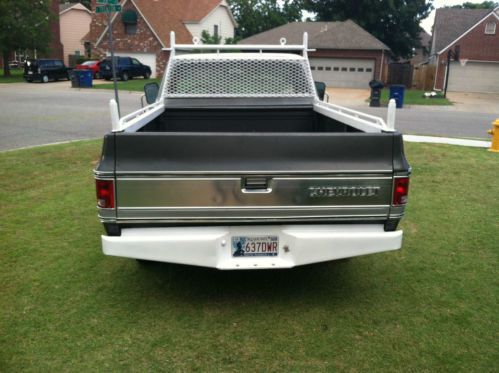 original truck from what I can tell. The truck is a 3/4 ton heavy duty truck, but has never been abused. It has a lot of power and pep still left in her. It has a new master cylinder and tail lights the tires have plenty of tread left. The bed of the truck is very solid and the railing and headache rack are a nice touch to the truck but could easily be removed. The interior is in