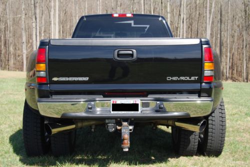 Listed here is my 2003 Silverado LT 3500 with the mighty LB7 Duramax diesel and Allison 5 Speed automatic transmission. It has push button 4 Wheel Drive with all the LT options (see specific options above). I purchased new in 2003 and has been in my possession ever since then. Always garage kept and well maintained. Very low mileage with only 34336 and still runs as strong as it did when new. In my opinion, it's still new! The leather interior is still in great shape with only very minor wear on the driver's seat from getting in and out over the years. Please see pics and you will see that only very minor wear. I have installed rear air bags with the valve stems placed in the upper license plate screw holes (this makes for a clean setup). I also installed a Banks 6 Gun tuner with a dial mounted in the A-pillar gauge pod that can be adjusted on the fly. Also in the gauge pod are Banks exhaust temp and boost gauges. The truck also has the Banks big head waste gate installed with 4" exhaust from the downpipe back through the muffler to the rearend where it splits into 4" duals with 6" polished and rolled stainless tips! This has a great sound but still quiet when you want it to be. It has the AEM brute force cold air intake w/ reusable style air cleaner (just clean, re-oil and keep trucking). Also you will notice the 22.5" Alcoa semi wheels with Sumitomo tires. I also upgraded the shocks on all 4 corners as well as the steering arm shock. The truck has not been lifted, just the torsion bars adjusted at the front to accommodate the larger wheel/tire setup. This truck is in great shape and the only reason for selling is because I hardly ever drive it anymore. I used to pull an enclosed trailer for a drag car a few times a season and the occasional camping trip but hardly ever used. Definitely an "attention getter" everywhere I go and I always get lots of compliments! Thanks for taking a look at my listing, enjoy! * I updated the listing to add another picture of underbody, never been in salt or off road...except in the grass! :-)