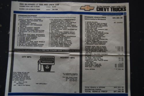 2003 Chevrolet Silverado 3500 Lt Crew Cab Pickup 4-door 6.6l Duramax 1 Owner 4wd on 2040-cars