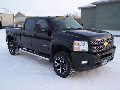 2013 Chevy 3500HD with lots of extras... This 2013 Chevy 3500HD 4x4 has it all!!! It is equipped with all of the LTZ model options that come standard and then has a lot more... --3 inch leveling kit --20 inch custom rims --20 inch custom tires --custom painted to match fender flares -- custom oval nerf bars --Front and rear Laverne mud flaps --spray in bedliner --sunroof --Navigation --Rear camera --clearance lights --Tow package --Remote start --Trailer tow mirrors All of the custom options were dealer installed. This pickup comes with full factory warranty. |