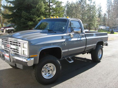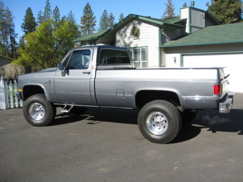 1987 CHEVORLET SILVERADO C30 4X4 LONG BED APROX 27,000 MILES ON REBUILT 454 CU V8, RUNS GREAT BUT NEEDS THE FUEL INJECTION SYSTEM ADJESTED, BURNS A LITTLE RICH. THIS IS A BEAUTIFUL RUST FREE RIG WITH NEW PAINT, NEW EXHAUST, ALMOST NEW BF GOODRICH A/T 315/75/16 TIRES ON WELD ALLOY RACING WHEELS. HAS TUBRO 350 TRANY AND MANUAL LOCKING FRONT HUBS. COULD USE A FRONT END ALIGNMENT. THE INTERIOR IS VERY CLEAN HAS NEW CARPET, NEW FLOOR MATS, NEW HEADLINER, AND NEW KENWOOD STEREO SYSTEM. ONLY A COUPLE SMALL RIPS IN THE DRIVERS SIDE SEAT AND SOME WEAR MARKS ON THE TURN SIGNAL. POWER WINDOWS, POWER STEERING, POWER DOOR LOCKS, AC, DUEL FUEL TANKS, BUT NEEDS A NEW SWITCH. FEEL FREE TO EMAIL ME ANY QUESTIONS YOU HAVE AND I WILL TRY TO ANSWER THEM. SHIPPING IS UP TO THE BUYER |