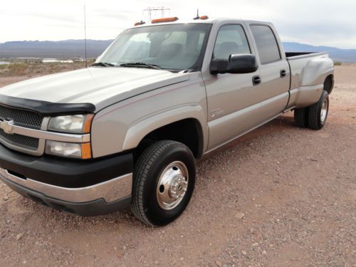 I am the 2nd owner of this extremely clean Silverado 3500 Diesel, Allison Automatic, Four Wheel Drive, Crew Cab, Dually. This truck is completely, and I do mean completely, rust free. It has been a well maintained, senior owned and operated truck. The paint shines like new. Never in accident and is in completely original condition. The interior is leather and in very nice condition. No kids (nothing against kids), no pets, no smokers, no rips or stains and extremely clean. The carpet looks near new. This truck is completely loaded with all options. Heated power seats (both sides), on star, xm, bose sound, deep tinted glass and everything works. The tires are new E rated (less than 1000 miles). All fluids have been changed. The transmission has been serviced including fluid, internal and external filters. New fuel filter, serpentine belt, air filter. New shock absorbers 1 year ago. The brakes are at 90% (4 wheel disc). Reese electronic brake controller. A pair of Optima, (the red ones with the rounded corners) batteries. If you're familiar with the Duramax-Allison combination, at 162,000 miles this truck will provide many many more years of service. A new version of this truck is around $70,000 For additional information call 928-303-6753