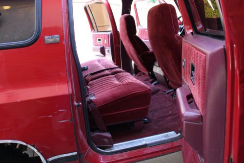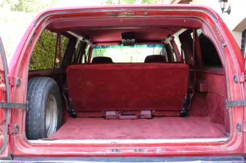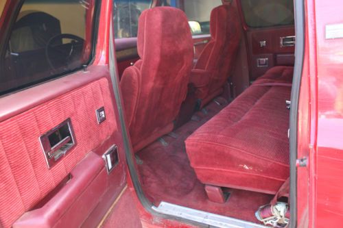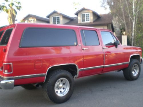 1990 SUBURBAN 4X4 K1500 RUST FREE ORIGINAL PAINT CALIFORNIA TRUCK, SILVERADO EQUIPED 8 PASSENGER 350 CID 4L80 OVERDRIVE TRANS LOADED WITH OPTIONS .PWR MIRRORS P/S PWR WINDOWS ALL WORK PWR LOCKS TILT WHEEL CRUISE CONTROL REAR WINDOW DEFROSTERS DUAL A/C NEEDS CHARGING TRUCK HAS TOW PACKAGE FACTORY SKID PLATES FRONT TOW HOOKS RUNS VERY WELL TRANS SHIFTS WELL 4X4 WORKS INTERIOR IS REAL NICE INCL HEADLINER CARPETS ARE NICE, BODY IN NICE CONDITION SOME PAINT PEELING WHICH IS COMMON ON THESE DRIVERS SEAT SHOWS SOME WEAR OTHERWISE VERY NICE SMALL DENT ON FRONT DRIVERS FENDER BFG 33.12.50 15 TIRES ON ALUMINUM RIMS NO LEAKS FACTORY DUAL TAIL EXHAUST. VERY CLEAN RUST FREE UNDERCARRIGE, LOOK AT THE PIC'.S TRUCK IS SOLD AS IS $500 DEPOSITE IS DUE AT THE END OF THE SALE BALLANCE TO BE MADE BY WAY OF BANK TRANSFER, BUYER TO ARRANGE FOR PICK UP OR SHIPPING I CAN HELP WITH SHIPPERS. PLEASE DONT BID IF YOU ARE NOT READY TO BUY . THANK YOU GOOD LUCK