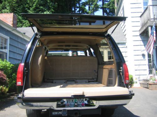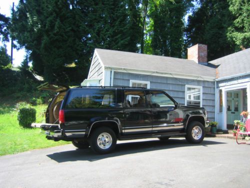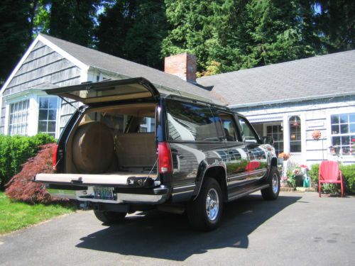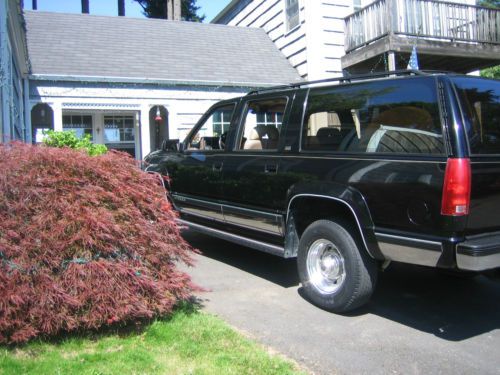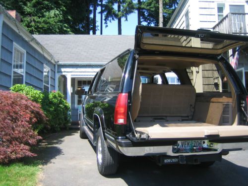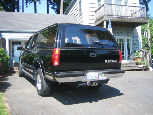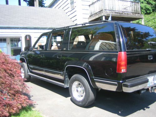 Up for sale is our 1993 Chevy Suburban. This car is in excellent original condition, it drives like the KING of the Road. We are the second owners; we bought the car in 1995 and have owned it since. It has been a Portland Oregon car since new. It has been my wife’s daily driver, but now the kids are off to college, so we are selling our totally dependable, capable, reliable Suburban. It has all the options: the heavy duty tow package, it tows anything easily, the lighted side running lights, the rear tail gate option, it is a 454 motor, leather seats that are in excellent condition throughout the whole car. It also has the rare aftermarket WELD racing equipment wheels and make the truck look very sporty. It has the very desirable and rare front bench seat adding an extra passenger and very comfortably carrying 9 passengers and all their gear while towing anything you want behind you! This car is very able to do and tow anything you want. 4 wheel drive, roof rack, rear air conditioning blower with rear air condition controllers, so all 9 people in the car are always comfortable. A new GM Good Wrench transmission was installed about 5 years ago, it has approximately 3,000 to 5,000 miles on it. The engine is very strong and runs like a top! The water pump, the starter motor, the alternator and the radiator have all been replaced within the last 5 thousand miles. The lights all work cruise control, brakes are great, and radio cassette works fine, all original. The tires have approximately one more summer left in them. The glass is good all around the truck, no chips or scrapes. The interior is LIKE NEW, excellent leather throughout and the carpets and original floors mats are super. The exterior is in very nice shape just a few door dings, bumpers all good, rubbers all excellent. The paint still looks like new, not faded at all. The car has been garaged its whole life, not leaks, it looks LIKE NEW. This car will drive for many more miles, while towing along any and every one you can imagine. I has the extra-large 36 gallon gas tank, you can go a long way between gas stations! It handles terrific around town and is a great high way cruiser; you sit up high and can see everything. The Oregon plates are not included in the sale. It has been a TERRIFIC Suburban for our family since 1995! You are welcome to come and see the truck, we are in Portland Oregon. THANK YOU & HAPPY BIDDING! |