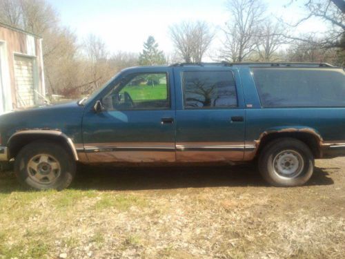 truck runs great, just needs new intake gasket, power steering pump will need to be changed. tires are not the best, but they work. looking to get rid of, because I just don't have time to fix it. 4WD works great. shifter is on the floor. have not been stuck in suburban since I have had it. suburban is a tank. the tabs have expired, so it will need new tabs, has a clean title. SUBURBAN IS FOR PICKUP ONLY. you will have to tow or trailer home. I have not ran the truck since the intake has been leaking. I am positive it is the intake, because I seen where it is leaking, and my last suburban had the same problem. I don't believe it will drive too far with antifreeze leaking. I did put a new alternator and new inner and outer tie rods in. if you have any other questions shoot me an Email. THE SUBURBAN IS AS-IS, AND FOR PICK UP ONLY.