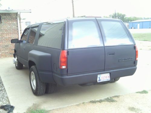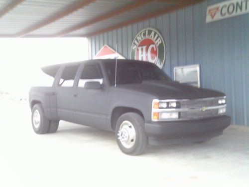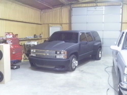 1994 Custom Dually Suburban & Custom Rat Rod / Pro Street Hot Rod . 155269 Miles. 350 TBI Small Block . New Rebuilt Performance700r Trans, 6 New Tires, Has C Notch on rear Did have Air Ride on rear suspension at one time, Not bagged at this time. Lowered with shackles in the rear. Tilt , Cruise , Manual windows and locks,Vinyl seats rubber mat. AM/FM CD. Has front and rear air just redone. Hooker Competition Headers with Flow Master mufflers . New Limo Tint on all the windows. Steel Cowl Hood , Super Street SS Smooth Front Bumper . Billet grill insert . Steel Roll Pan . Runs and drives great. Daily driver. If you have any questions please ask before bidding.