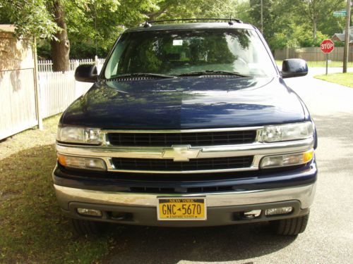 Up for auction is a 2001 Chevrolet Suburban 1500 series with 96,132 original miles. This vehicle has been in my family since new and has always been garaged, body has never been damaged and paint is original, tires are in very good shape, brakes are nearly new, and the engine is a 5.3 V-8 with 4 wheel drive and runs flawlessly. Vehicle has rear doors and 3 rows of seats, and a drop down video screen, it originally came with vcr under the seat, and can be hooked up with a dvd player . This truck originally belonged to my wealthy aunt, who would get a new car every 3 years .When it came time to trade it in for an 04 Suburban the dealer gave her some trouble trading it in and she called me from the chevy dealer to ask if I wanted it , I got it even though I didn't really need it because the price was right , I really preferred to drive my buick park avenue during the week and I didn't put many miles on it. My brother got it after me about 6 years ago , he put it in his garage and never used it! it came out a few times a year to run it a bit and wash the dust off ,that's it! My brother is now moving and we need to find a new owner for this super clean vehicle . The truck is located in Long Island ,NY zip 11788 . If you have any questions or would like to see it or drive it call me at 516-398-1964 my name is Andrew - thanks for looking!