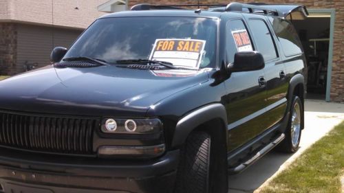 CUSTOM SUBURBAN. INCLUDES 4 SUMMER CHROME WHEELS/TIRES, 4 WINTER RIMS/TIRES. SUPERIOR SOUND SYSTEM. CUSTOM HEADLIGHTS, TAILIGHTS, GRILL, WINDOW TINT (REMOVABLE). 2 very minor scratches on driver door, 2 windshield chips. Backseat is brand new, never used, it comes out. I babied this vehicle since I bought it in 2005 when it had 30,000 miles on it. Always in a garage, never on gravel. Oil changed every 3000 miles, always had things repaired if they came up. Water pump, alternator have been replaced. Battery could use replacement, possibly spark plugs. |