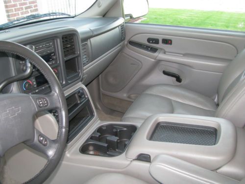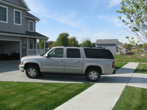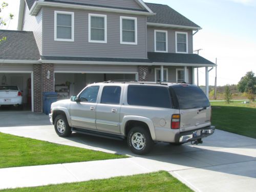 YOU ARE BIDDING ON A 2004 CHEVY SUBURBAN LT ALL WHEEL DRIVE WHICH IS IN OUTSTANDING CONDITION WITH 84K MILES. THIS SUBURBAN HAS ALL AVAILABLE OPTIONS EXCEPT DVD. IT HAS LEATHER, QUAD BUCKETS, SIX DISC IN DASH CD CHANGER, STEERING WHEEL CONTROLS, POWER MOONROOF, BOSE SOUND SYSTEM, FLEX FUEL OPTION, REAR AIR CONTROLS, POSI REAR END AND STABILITRAC. WE RESENTLY PUT BRAND NEW TIRES ON IT AND AN INSTRAMENT CLUSTER (MPH GAUGES ETC). YOU WILL NOT FIND A CLEANER USED SUBURBAN OUT THERE(SEE PICS). WE HAVE A SPREAD SHEET ALONG WITH A FILE WITH RECEIPTS FROM SERVICE WORK DONE ON THE SUBURBAN, WE ARE VERY ANAL ABOUT OUR VEHICLES. NADA RETAIL VALUE OF THE SUBURBAN IS $14,000. OUR SUBURBAN IS FOR SALE LOCALLY AND WE RESERVE THE RIGHT TO END THE BIDDING EARLY. BID WITH CONFIDENCE 100% FEEDBACK. IF YOU HAVE ANY QUESTIONS FEEL FREE TO EMAIL US. THANKS.
