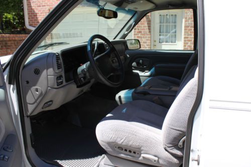 The NEW: Just Serviced!! New Firestone Tires New Front Rotors and Pads New Fuel Pump and Filter The GOOD: 5.7L V8 White with Dark Grey Two Tone Paint Grey Cloth Interior CLEAN CARFAX!!! CD Player CD Changer in Rear Power Windows/Locks Cruise Control Overhead Console Brake Controller Spark Plugs in great shape New WeatherTech Floor mats Throughout Truck Trailer Hitch I have 1 remote and 1 key for the Tahoe Owners Manual is intact Clean Alabama Title in Hand The BAD: The right door has a dew dents in it but nothing gross (see picture). The rear cargo carpet is dirty/stained but you can't see it with the floor mat in. Truck does not have a spare tire. (It mounts inside on these trucks) I recently had it quit on me out of nowhere. It has only happened once but I feel I have to tell you all that. Like I said it runs great and started right back up. I don't know what it was, but it hasn't done it again. These trucks are hard to come by these days and this is in nice condition for a 17 year old truck. Just remember that this truck is older and will NOT be perfect. I bought the truck as a fun project and found another one recently and now have to sell this one. I would drive this truck anywhere right now. Feel free to ask any questions. Thank you...... Text or Call Matt @ 334-791-72one9 |