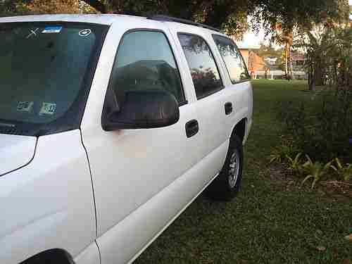 THIS IS A 2004 CHEVROLET TAHOE SPECIAL PPV MODEL IN A RARE 4x4 CONFIGURATION. THIS IS WHITE WITH AUTOMATIC TRANSMISSION, ELEC SEATS, "BARN" DOORS... ETC.... IT PREVIOUSLY BELONGED TO A STATE AGENCY AND WAS MAINTAINED WELL. THESE VEHICLES ARE VERY SPECIAL AND HARD TO FIND. THE 147,790 MILES IS NOT MUCH FOR THIS TYPE OF SUV. IT HAS A LITTLE RUST AND A FEW MINOR DINGS WHICH ARE EXPECTED, BUT IS READY TO BE DRIVEN. I CAN ARRANGE AIRPORT PICKUP IN MIAMI AND WILL BE GLAD TO HAVE THE OIL CHAINGED FOR YOU IF YOU ARE DRIVING HOME. PLEASE FEEL FREE TO CALL ME 305-233-7721 WITH ANY QUESTIONS.