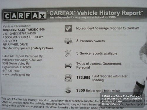 2006 Chevy Tahoe Police Package Special Service 2wd 5.3l V8 Very Nice Unit ! on 2040-cars