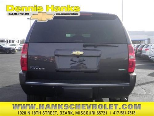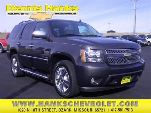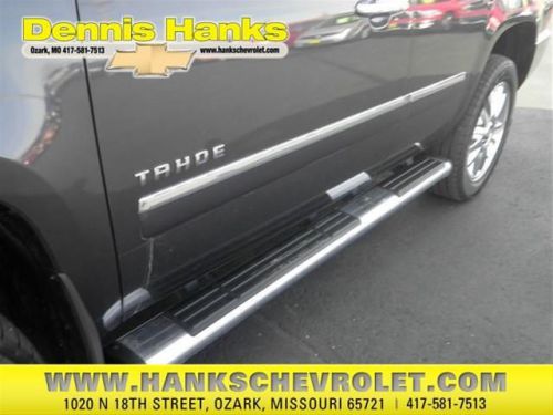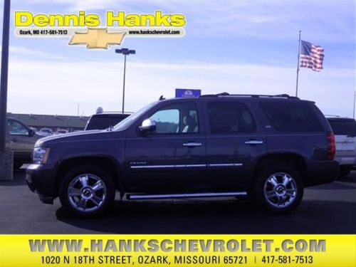 Welcome to Dennis Hanks Chevrolet where youd send a friend! Look no further than your Ozark Chevrolet dealer for new and used cars. We also proudly serve Springfield Nixa Branson and Southwest Missouri Chevrolet customers. We are proud to be celebrating our 28th anniversary as a 3rd generation family-owned store. For further assistance contact us by phone or email and our friendly staff will help you with all your auto needs. Does it all!!! This vigorous 2010 Chevrolet Tahoe LTZ 4WD would look so much better out doing all the stuff you need it to instead of sitting here unutilized on our lot* Priced below NADA Retail!!! Bargain Price!!! Biggest Discounts Anywhere** Great MPG: 21 MPG Hwy** 4 Wheel Drive never get stuck again.. Oh and did you notice that it's generously equipped with options: 2-Speed Active Electronic Autotrac Transfer Case Also Includes Provides increased trailering capabilities. 3.42 Rear Axle Ratio. Sunroof HD Air-to-Oil Auxiliary Transmission Oil Cooler Rear Seat Entertainment System 2-Speed Active Electronic Autotrac Transfer Case Heavy-Duty Trailering Package - Includes HD Air-to-Oil External Engine Oil Cooler Sunroof Rear Seat Entertainment System Sun Wheels: 20' x 8.5' Chrome Clad (4)... Dennis Hanks Chevrolet, "Where you'd send a friend."